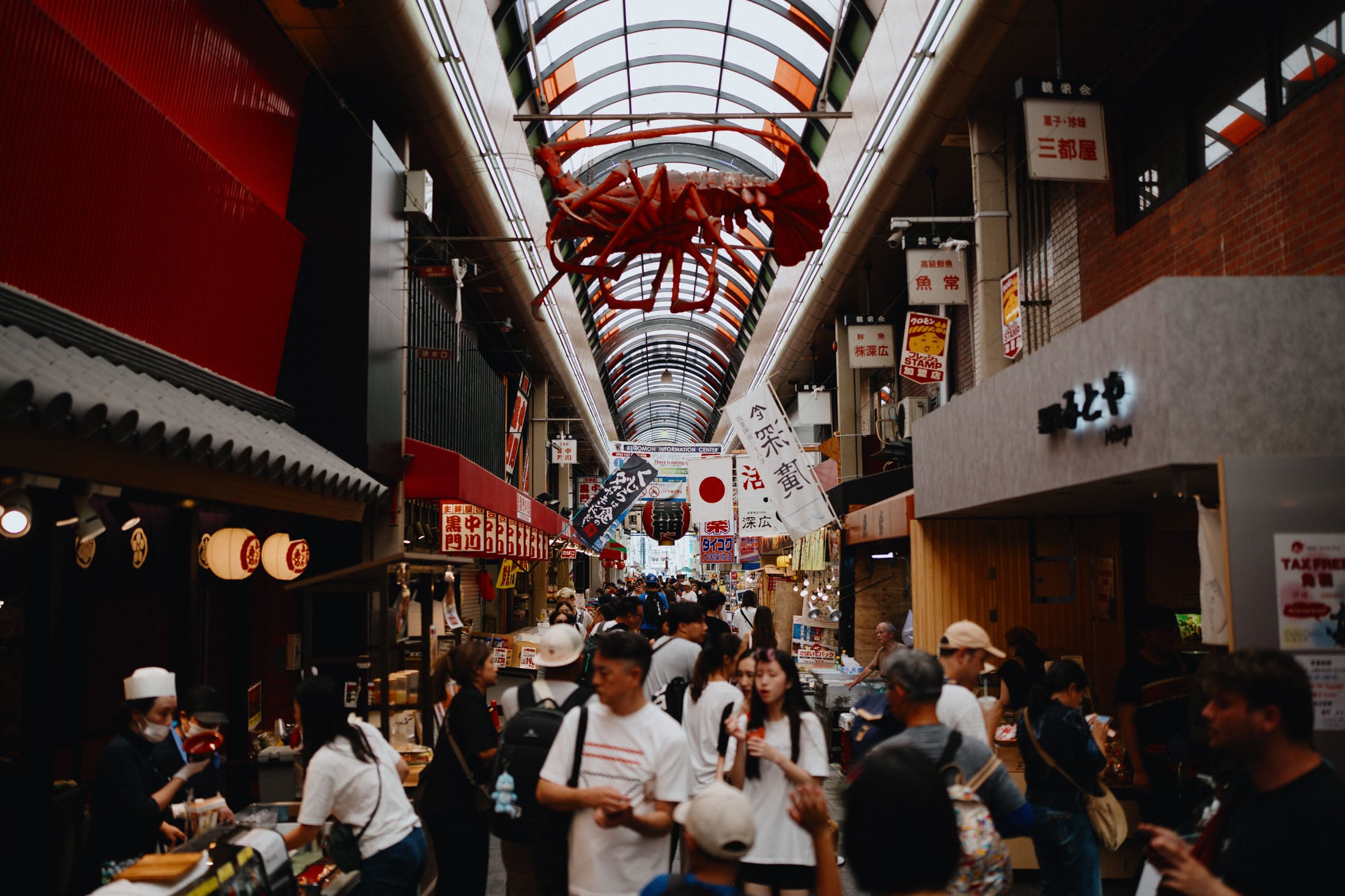 After stepping outdoors and realizing the sun was still there we tried to evade it quickly by visiting Kuromon Market, which would give us much needed protection for a while as it’s mostly covered.