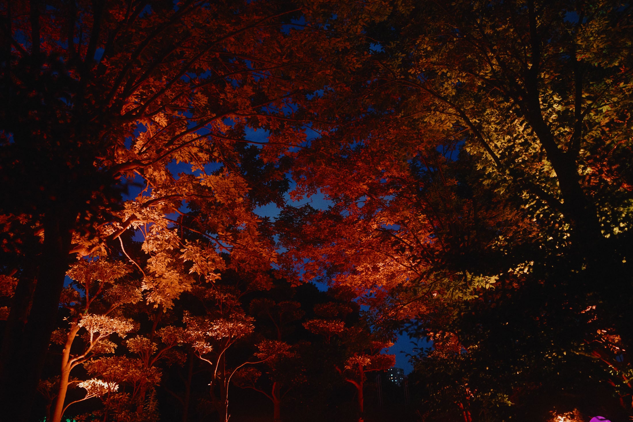 Stepping into the garden felt magical. The sound and the lights gave it an ethereal look. The lights kept changing, making the vegetation change every few seconds and transform into different shapes. Inside the garden itself there were a few different areas with distinct environments and objects.